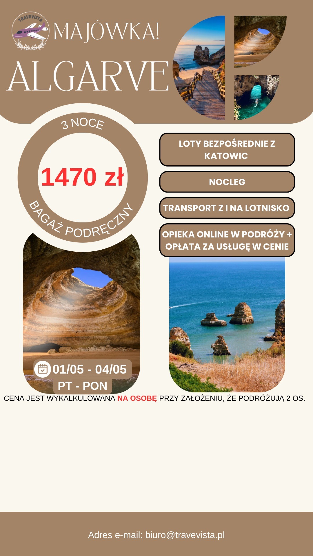 Majówka na jednym z najpiękniejszych wybrzeży Europy Algarve słynie z imponujących klifów, ukrytych plaż i turkusowej wody. To idealny kierunek na krótki wypad i złapanie pierwszego letniego słońca