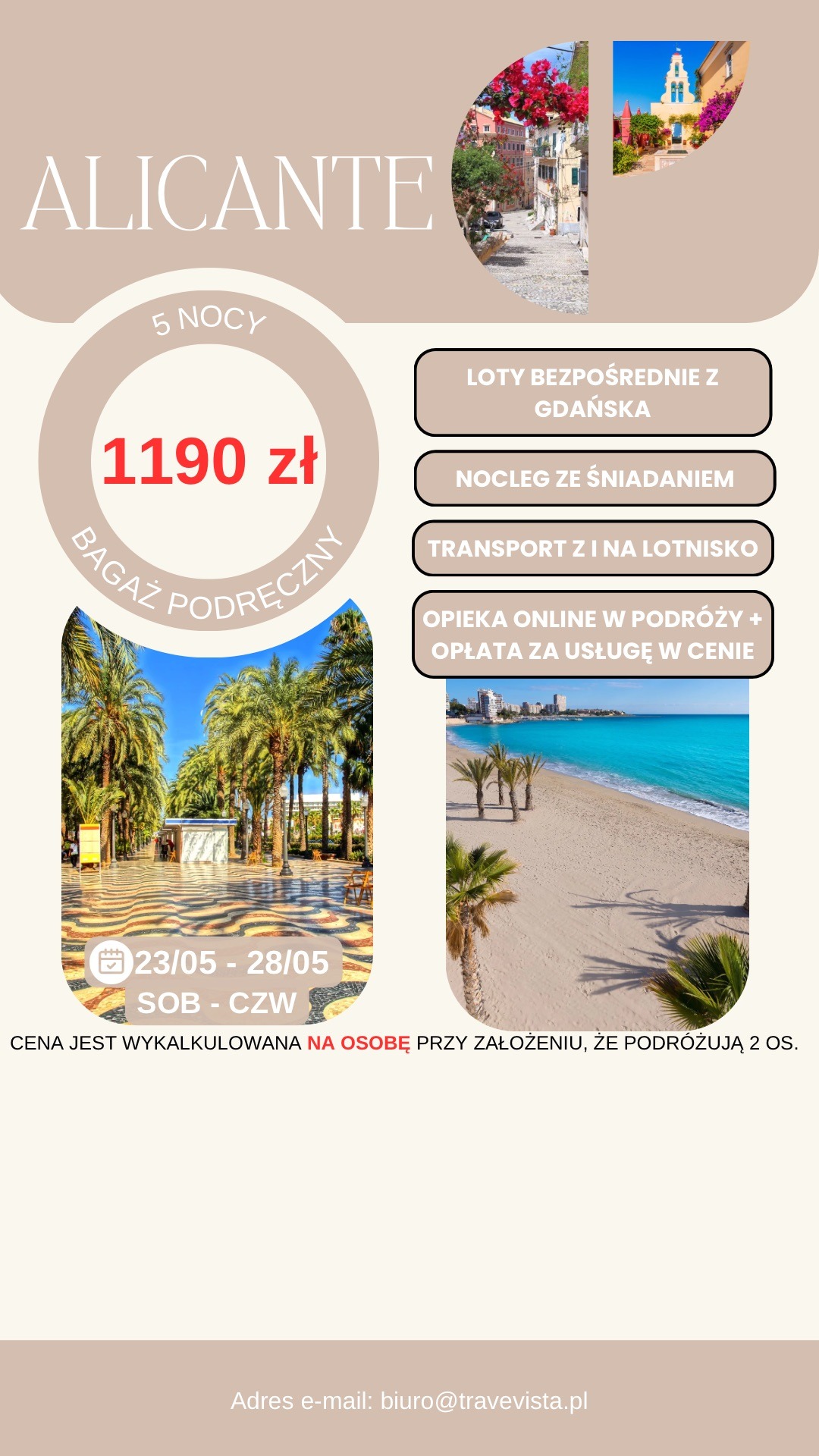 Słońce, palmy i hiszpański luz Alicante to idealny kierunek na majowy wyjazd – szerokie plaże, promenady i ciepły klimat jeszcze przed sezonem wakacyjnym