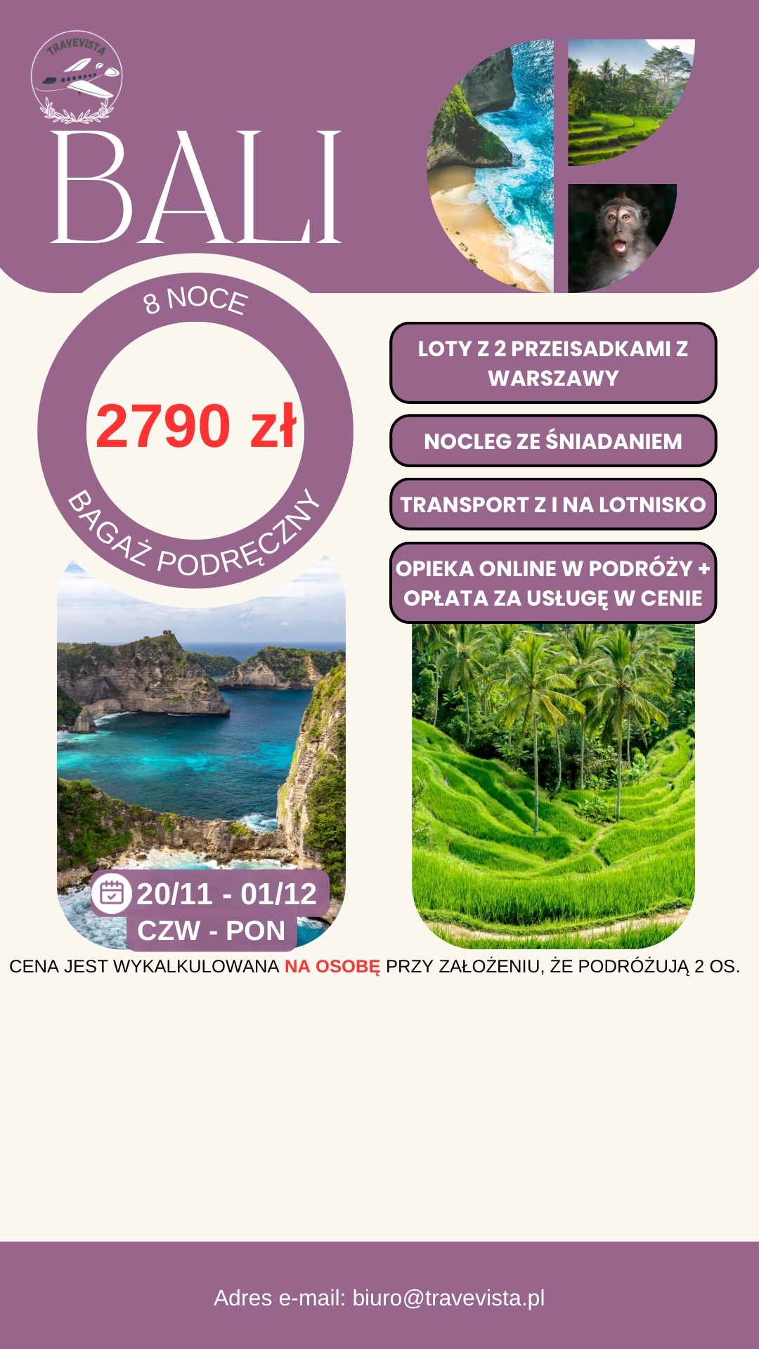 Cena dotyczy jednej osoby przy założeniu podróży we dwójkę.