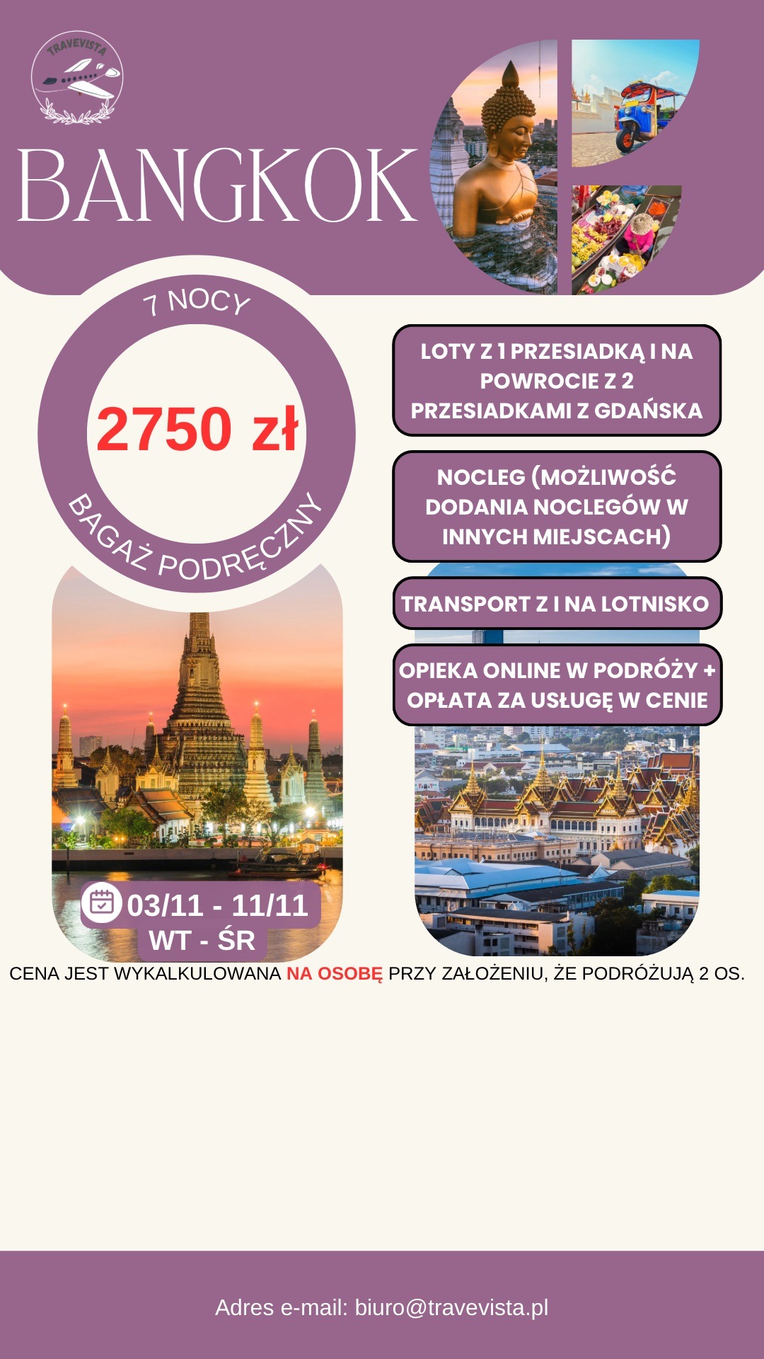 🇹🇭 BANGKOK NA TYDZIEŃ ZA 2 750 PLN/OS!