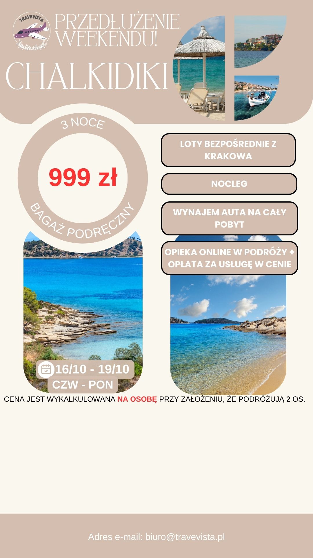 PRZEDŁUŻONY WEEKEND NA CHALKIDIKI – 4 DNI ZA 999 ZŁ/OS! 🇬🇷