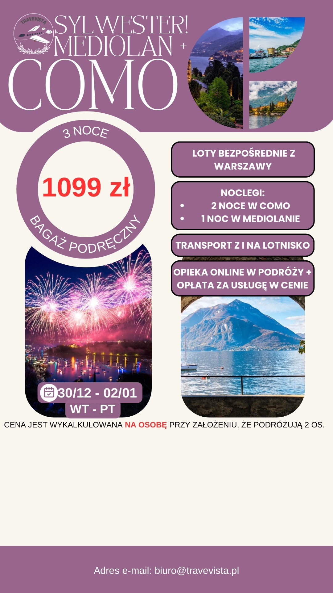 🎆 SYLWESTER! MEDIOLAN + COMO – 3 NOCE – 1099 zł