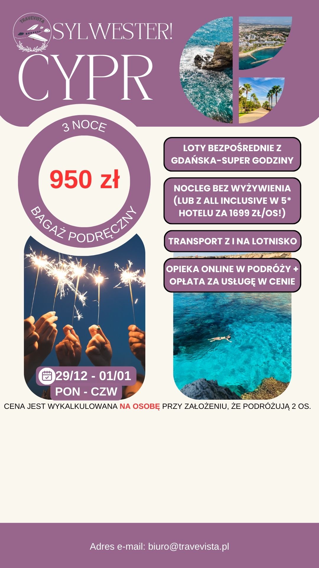 CYPR – SYLWESTER – 4 DNI ZA 950 ZŁ/OS! 🎉
