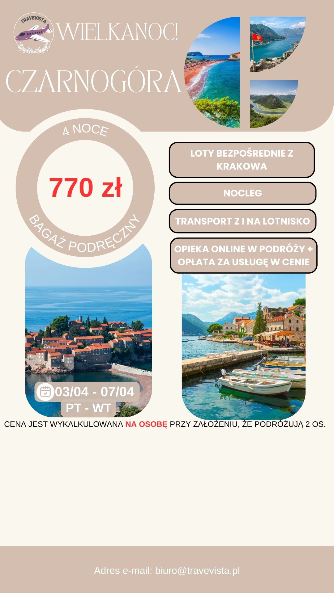 Wielkanoc w Czarnogóra to świetny moment na spokojny reset Ciepły klimat, piękne widoki, klimatyczne miasteczka i brak letnich tłumów – idealnie na wiosenny city & chill break