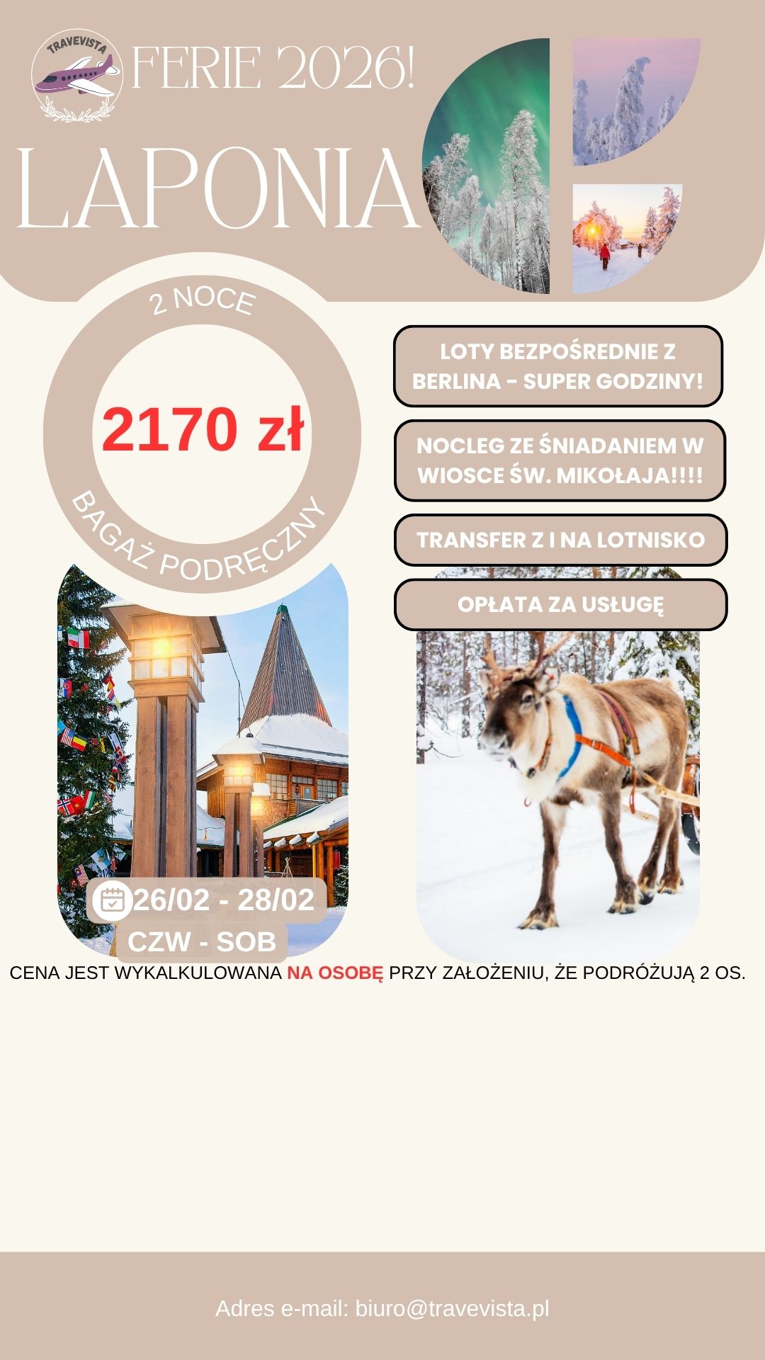 FERIE 2026 Z NOCLEGIEM W WIOSCE ŚWIĘTEGO MIKOŁAJA ZA 2170 ZŁ! 🎅❄️ Loty bezpośrednie i magiczny klimat Laponii!