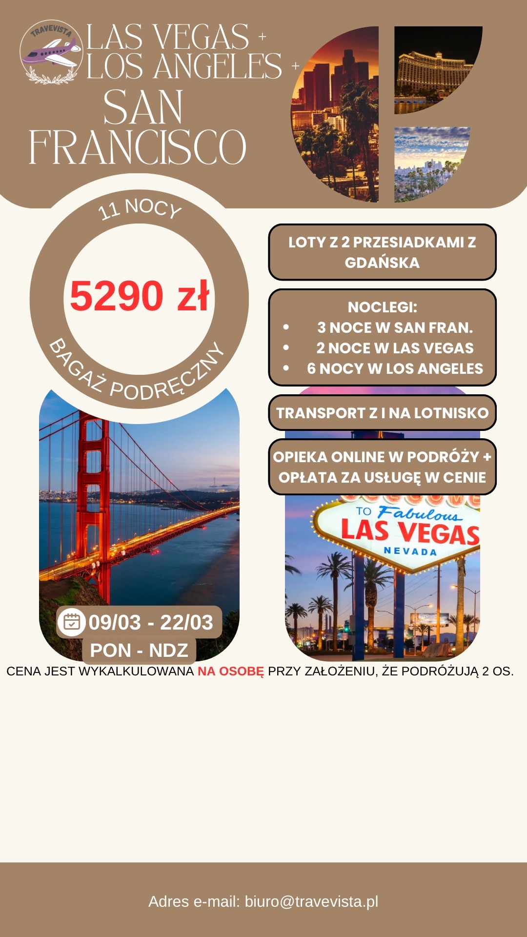 🇺🇸 SAN FRANCISCO + LAS VEGAS + LOS ANGELES - 12 DNI ZA 5290 ZŁ/OS! 🎰🌴✨
