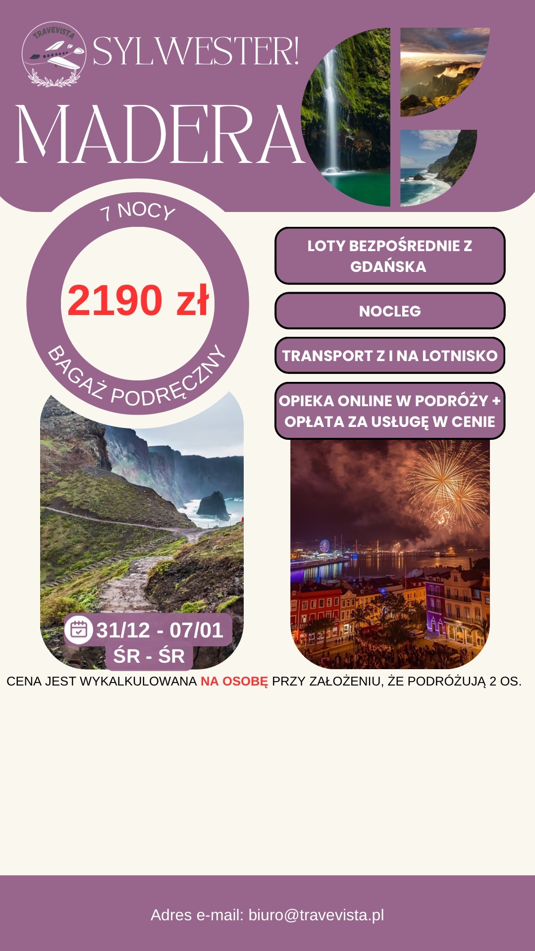 🎆 SYLWESTER NA MADERZE - PEŁNY TYDZIEŃ ZA 2 190 ZŁ!