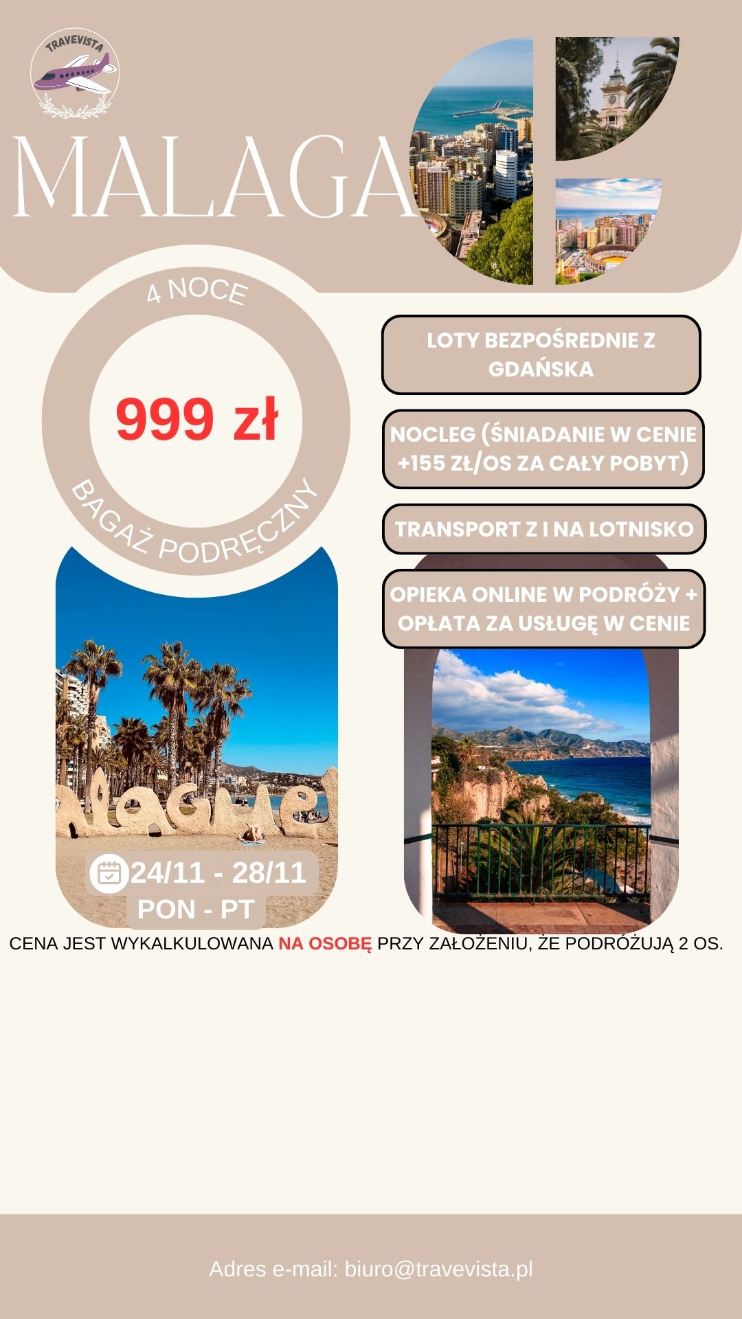 MALAGA – 5 DNI ZA 999 ZŁ/OS! 🇪🇸☀️