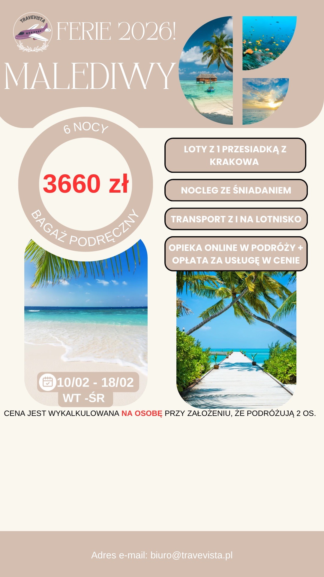 🌴 MALEDIWY - FERIE 2026 ZA 3660 ZŁ