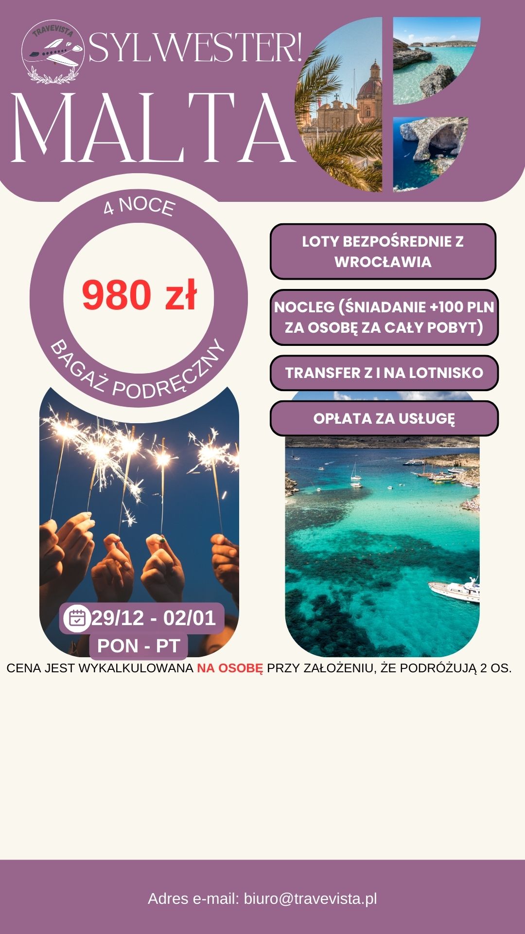 🎆 Nowy Rok w śródziemnomorskim klimacie? Malta zimą to słońce, klimatyczne uliczki i wyjątkowa atmosfera świętowania. Idealna opcja na krótki wypad z ciepłym akcentem!