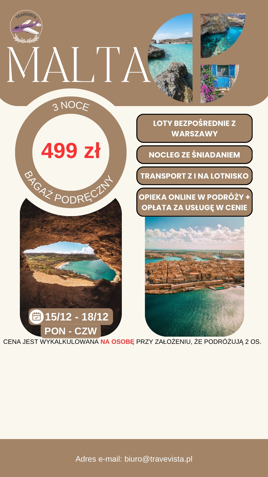 ☀️ MALTA NA 4 DNI W GRUDNIU ZA 499 ZŁ!