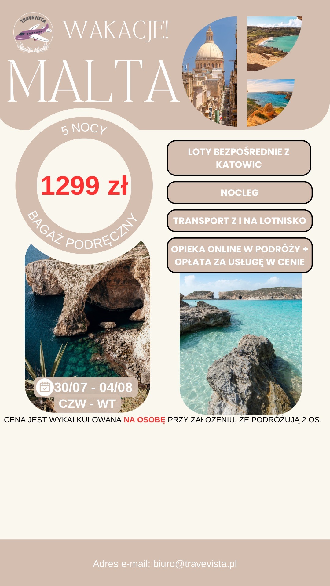 Słoneczna Malta – idealne miejsce na letni city break i plażowy chill Malta zachwyca krystaliczną wodą, klimatycznymi miasteczkami i pięknymi zatokami. Warto zobaczyć Vallettę, Mdina – ciche miasto z niezwykłą atmosferą oraz Blue Lagoon na wyspie Comino, gdzie woda wygląda jak z pocztówki.