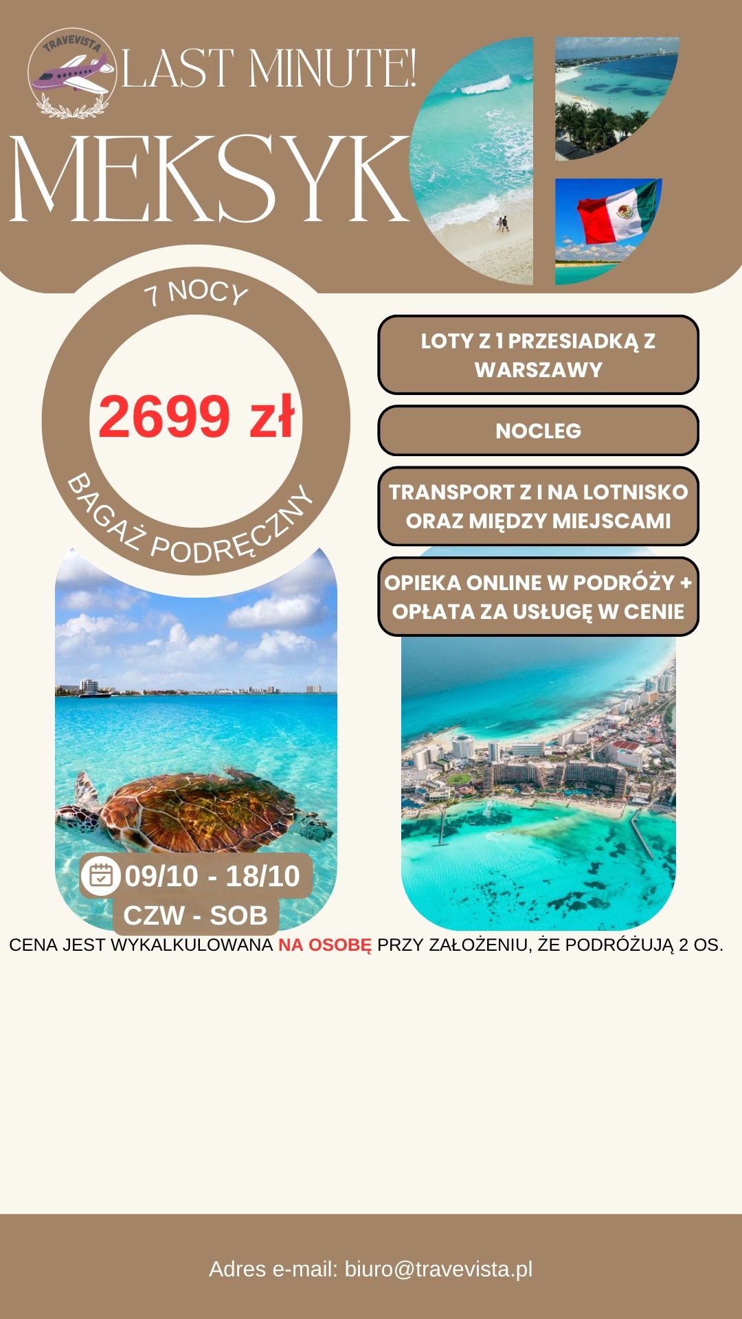 🇲🇽 LAST MINUTE! MEKSYK – 7 NOCY – 2699 zł