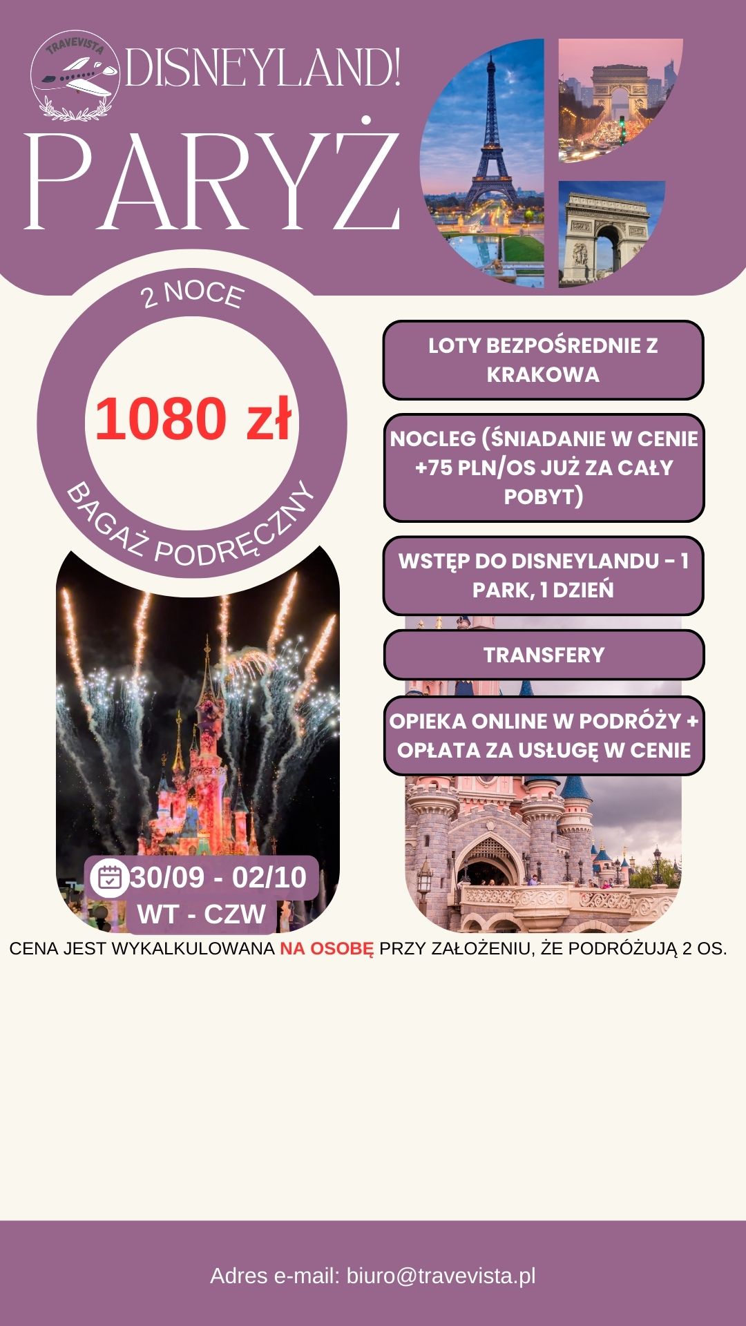 PARYŻ + DISNEYLAND – 3 DNI ZA 1080 ZŁ/OS! 🎡✨