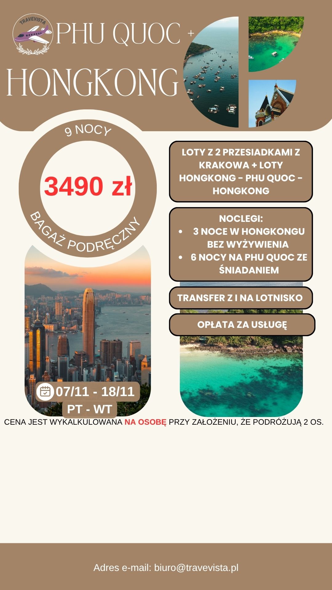 PHU QUOC + HONGKONG – 3490 ZŁ/OS NA 10 DNI!
