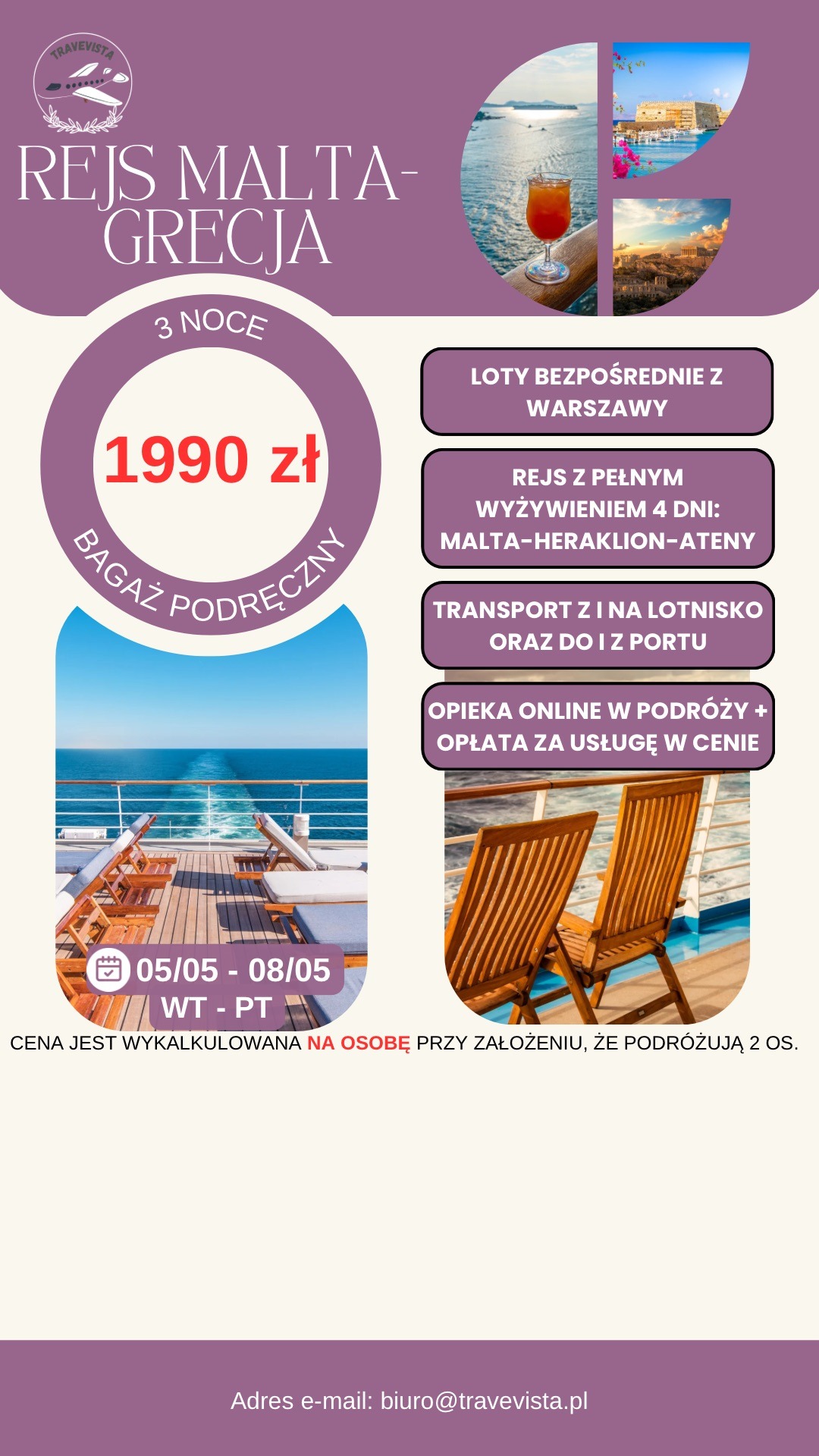 REJS: MALTA - KRETA - ATENY ZA 1990 ZŁ/OS!