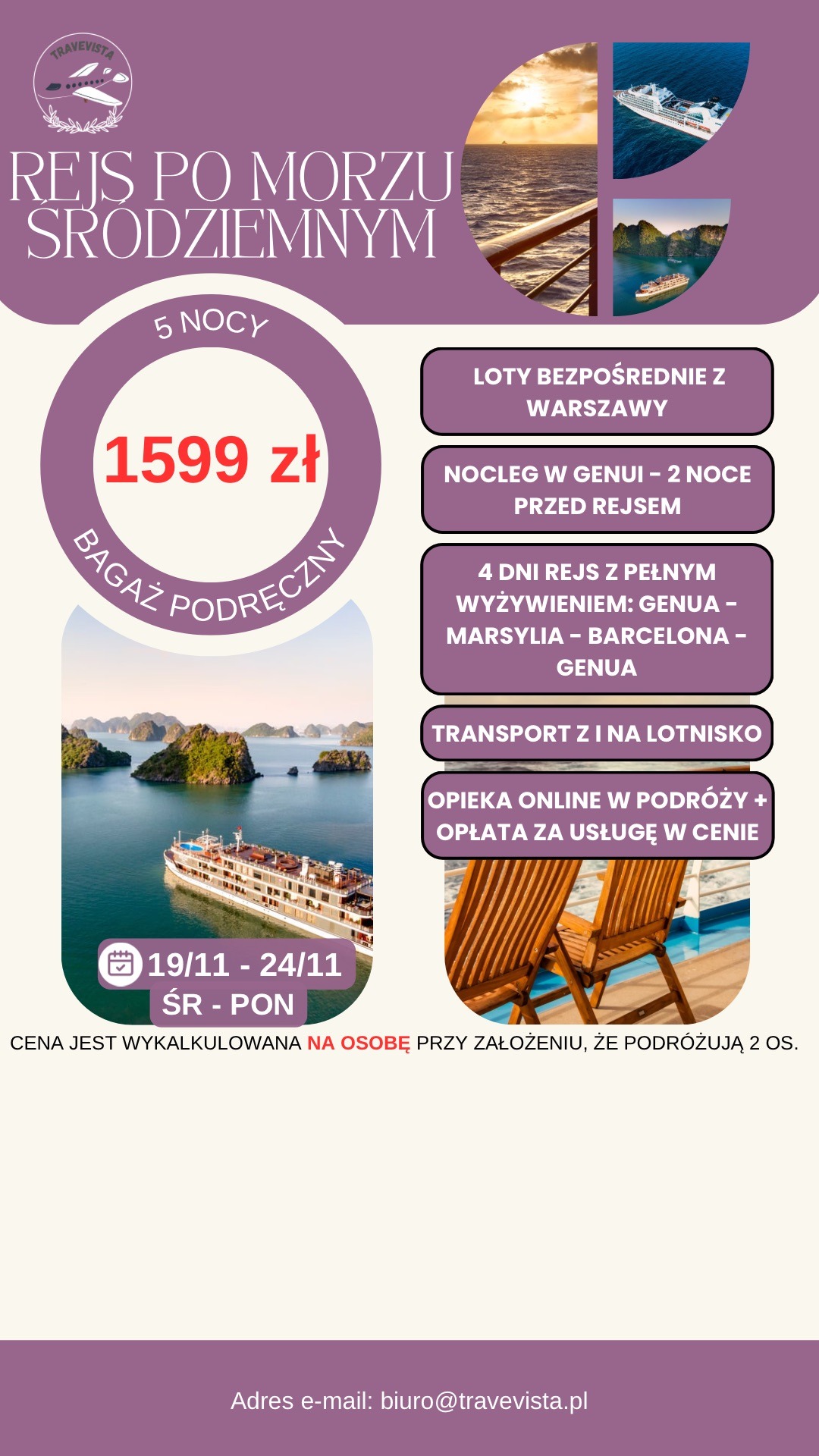 🛳️ REJS PO MORZU ŚRÓDZIEMNYM + POBYT W GENUI - 6 DNI ZA 1599 ZŁ!