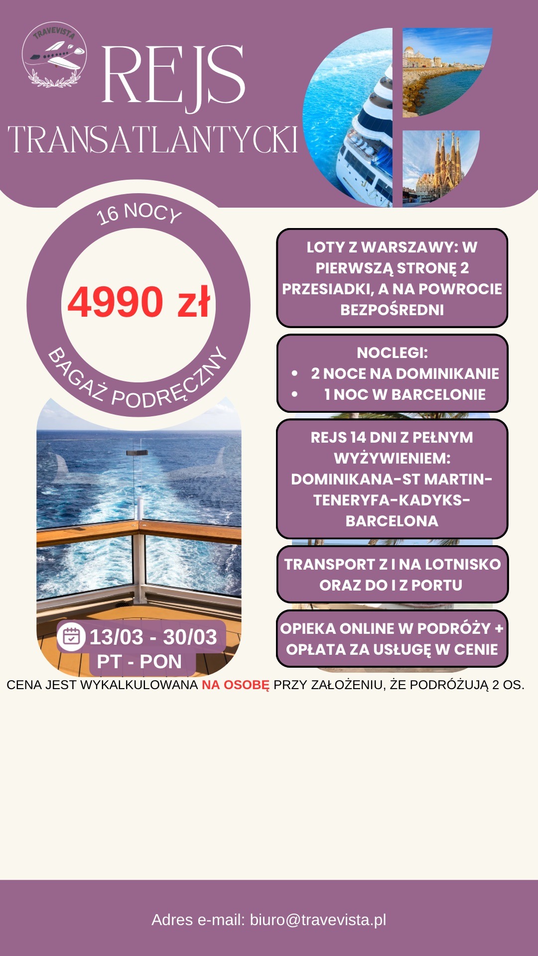 REJS TRANSATLANTYCKI - 17 DNI ZA 4 990 ZŁ