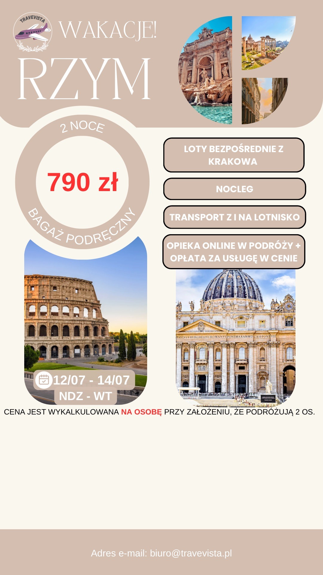 RZYM 🇮🇹 - 3 DNI NA WAKACJE ZA 790 ZŁ