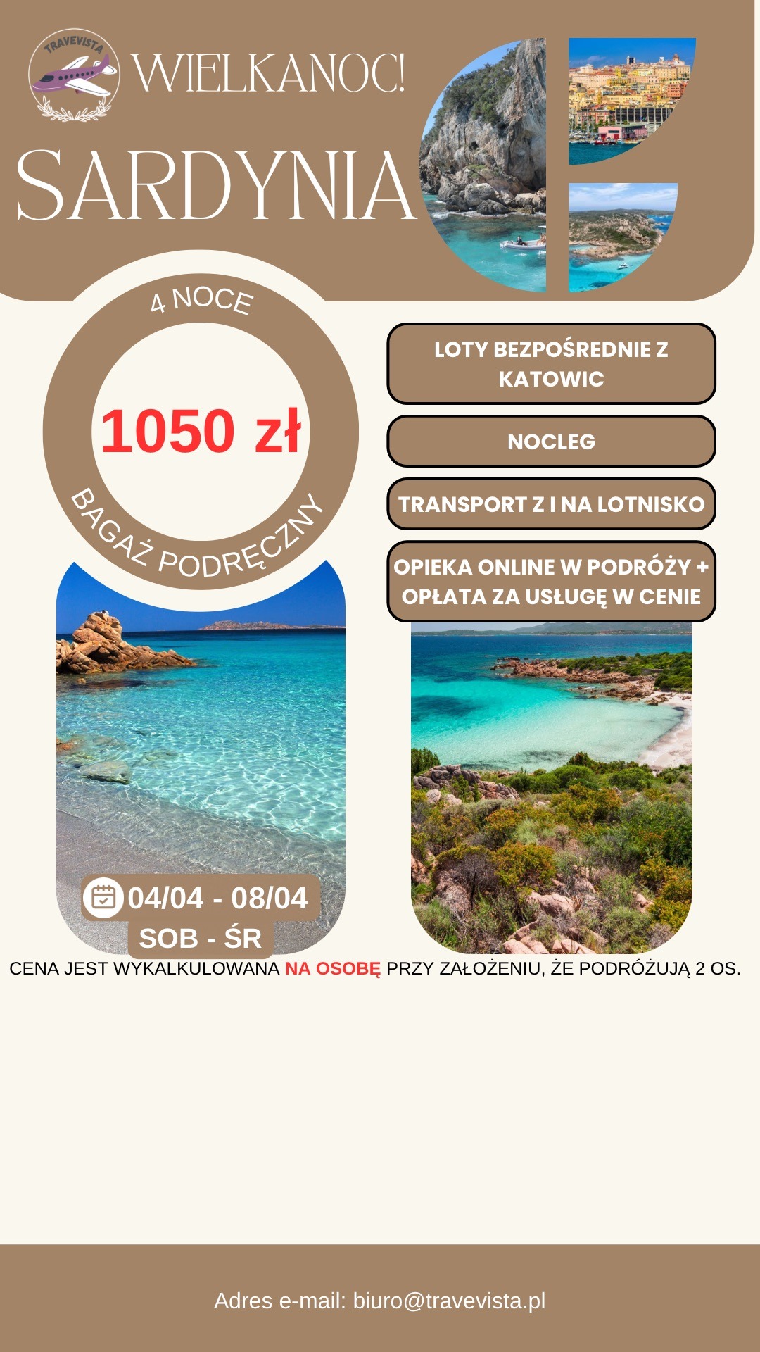 SARDYNIA - WIELKANOC, 5 DNI ZA 1050 ZŁ