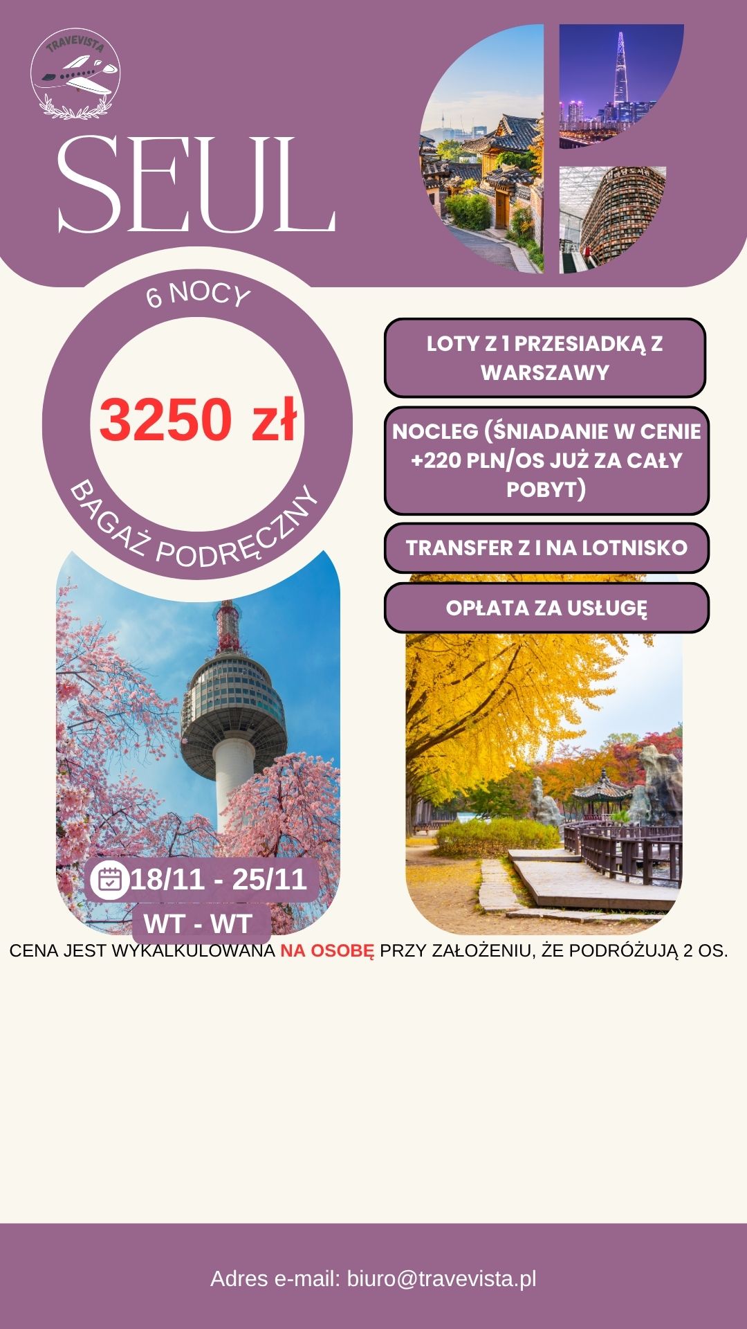 SEUL NA LISTOPAD – 3 250 ZŁ/OS! 🇰🇷🛫