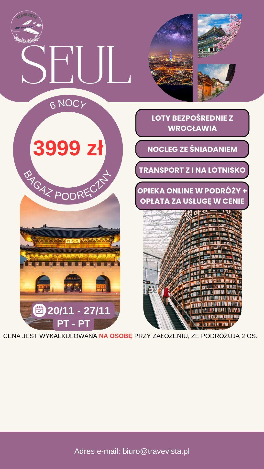 Cena dotyczy jednej osoby przy założeniu podróży we dwójkę.