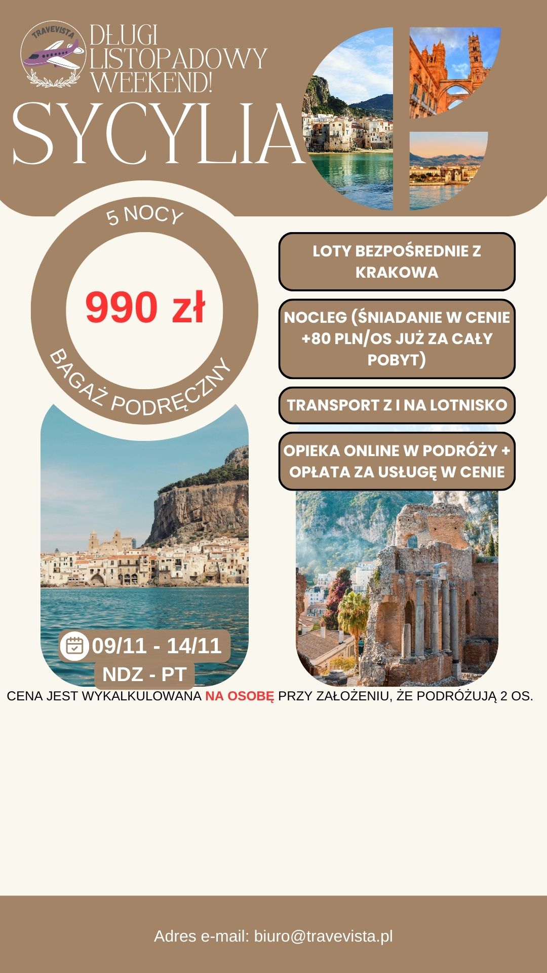 DŁUGI WEEKEND LISTOPADOWY NA SYCYLII ZA 990 zł 🇮🇹☀️