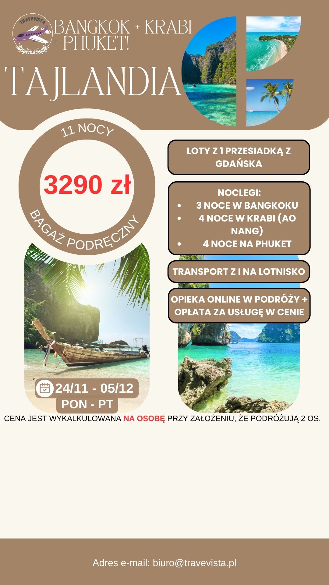 TAJLANDIA – BANGKOK + KRABI + PHUKET – 12 DNI ZA 3290 ZŁ/OS! 🏝️