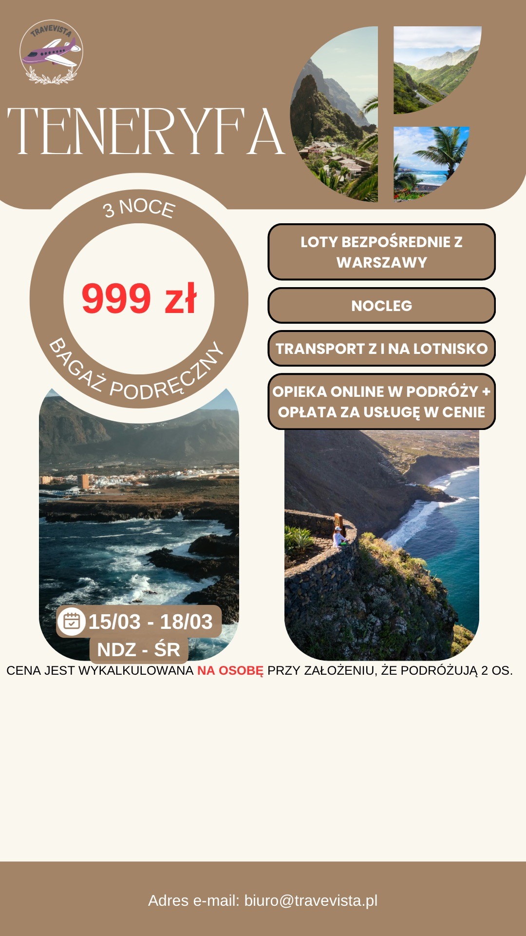 TENERYFA W MARCU - 4 DNI ZA 999 ZŁ/OS!