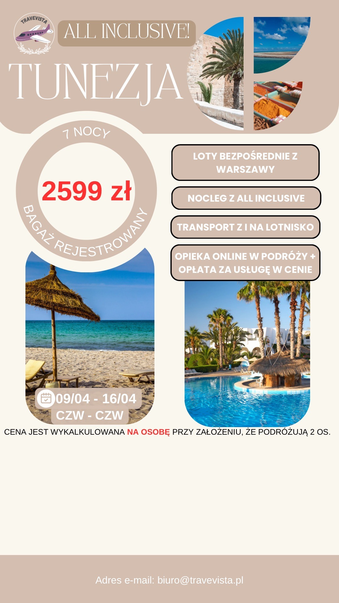 Tydzień relaksu nad Morzem Śródziemnym Tunezja to szerokie, piaszczyste plaże, ciepłe morze i słoneczna pogoda już wiosną. Idealna opcja na wypoczynek z all inclusive
